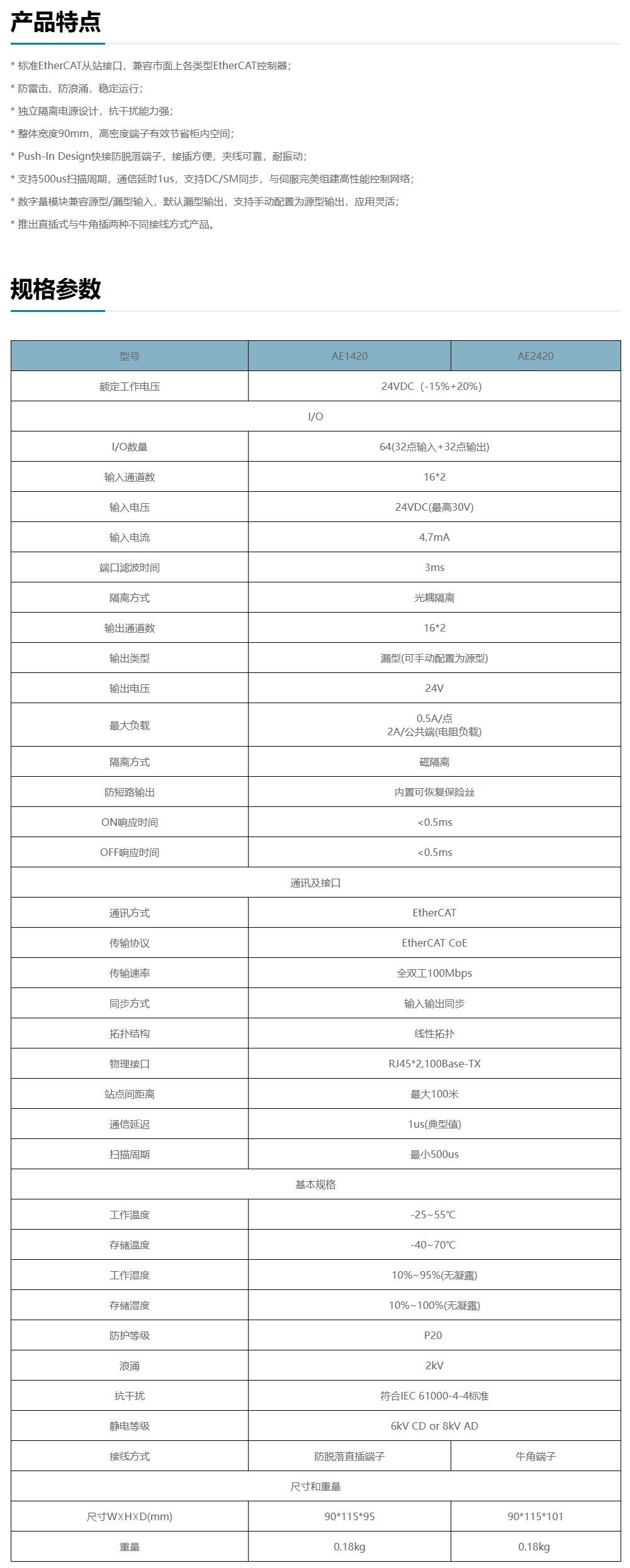 英威腾AE系列I/O模块产品具备适配性强与可大规模扩展双重特点,支持与具备EtherCAT主站功能的各类控制器进行数据交互,适用于远距离与大规模数字IO信号接入等应用场景。