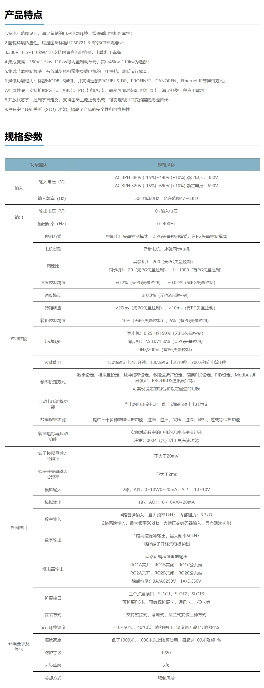 IPE300系列⼯程型变频器是基于工程应用需求设计开发的一款高性能闭环矢量单传动变频器,基于工业应用环境提升产品可靠性、易用性、可维护性和环境适应性,具有功率密度高、功能丰富、应用配置灵活等优点。IPE300系列工程型变频器可广泛应用于有色、冶金、造纸、石油、化工、暖通供水、市政、电力、建材、电源等具有高可靠性、高性能要求的设备驱动。