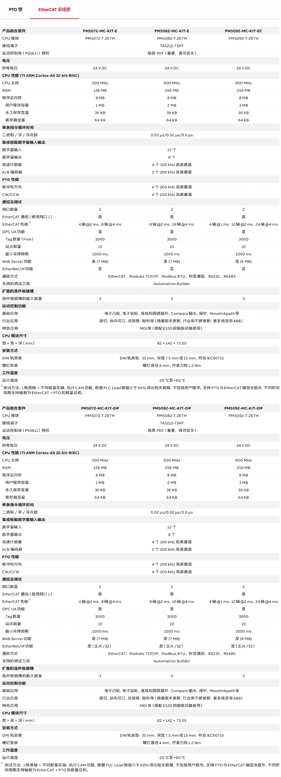 AC500-eCo运动控制PLC是专为运动控制应用准备的产品组合套件,支持脉冲输出(PTO)和EtherCAT总线通信,可与ABB E530伺服系统一起提供极具性价比的整体系统解决方案。产品组合提供丰富的配置,可覆盖24轴及以下的市场需求。仅需一个订货号,即可完成对CPU模块、接线端子及运动控制库(PS5611)授权的整体订购,通过使用Automation Builder,